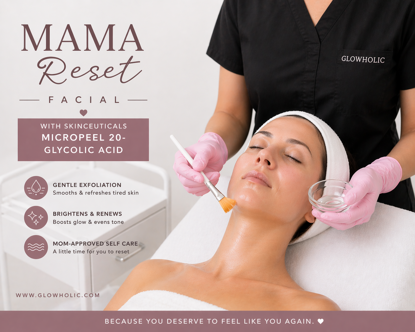 Our Mama Reset Facial(45 min) is your moment to pause, breathe, and feel like you again.